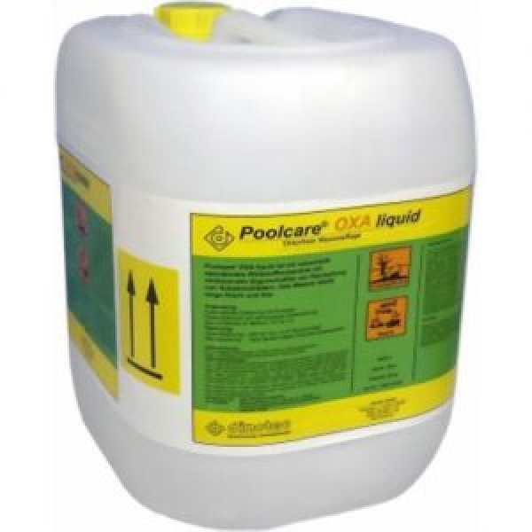 Poolcare OXA Liquid je tečno dezinfekciono sredstvo na bazi aktivnog kiseonika (34% hidrogen peroksida) za održavanje bazenske vode i prevenciju algi, bez hlora, sa preporučenom koncentracijom od 20-40 mg/l u vodi.