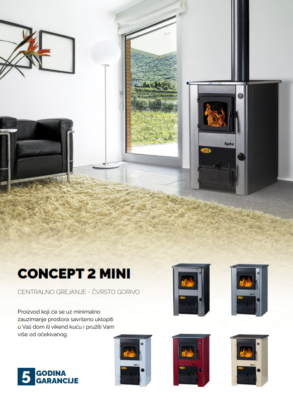 Concept 2 mini namenjen je za grejanje prostorija, kuvanje i pečenje hrane. Koristi čvrsto gorivo: suvo drvo, ugalj ili brikete.