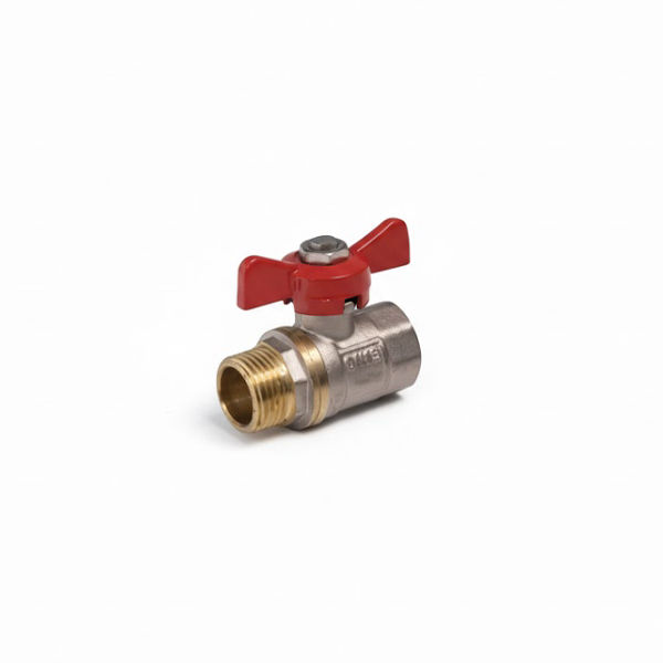 Mesingani kugla ventil sa muškim i ženskim navojem, otporan na koroziju i pritisak, namenjen za kontrolu protoka u vodovodnim i grejnim instalacijama.