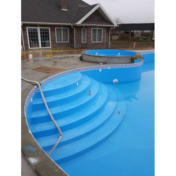 Oblaganje bazena poliesterom omogućava višegodišnju zaštitu betonskih površina kako fizičko-hemijsku tako i mehaničku. Istovremeno se dobija kompaktnost obloženih površina uz mogućnost kontrolisanog odvoda tečnosti. Za oblaganje bazena poliesterom potrebno je odraditi građevinske radove, a na mestima gde će stajati bazenska oprema postavlja se stirodur u veličini bazenske opreme. Za ravne zidove potrebno je obložiti ceo bazen mrežicom i stirodurom (nije uračunato u cenu) i nakon toga se vrši prskanje poliesterom.