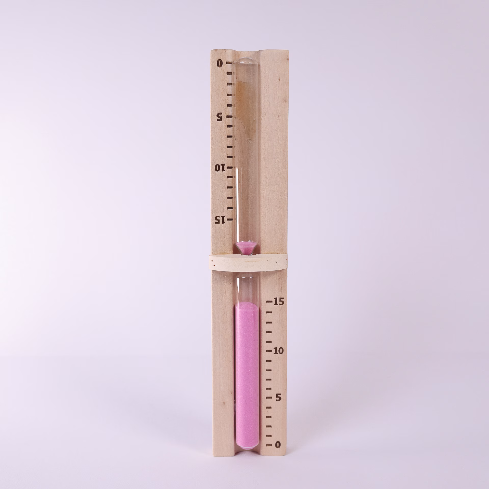 Sat funkcioniše na principu peščanog mehanizma, pri čemu sitne čestice peska ravnomerno prolaze kroz staklenu cev i jasno prikazuju protok vremena. Korisnik lako može pratiti trajanje sauniranja posmatrajući nivo peska u gornjem ili donjem delu staklene posude, bez potrebe za električnim napajanjem ili dodatnim podešavanjima.