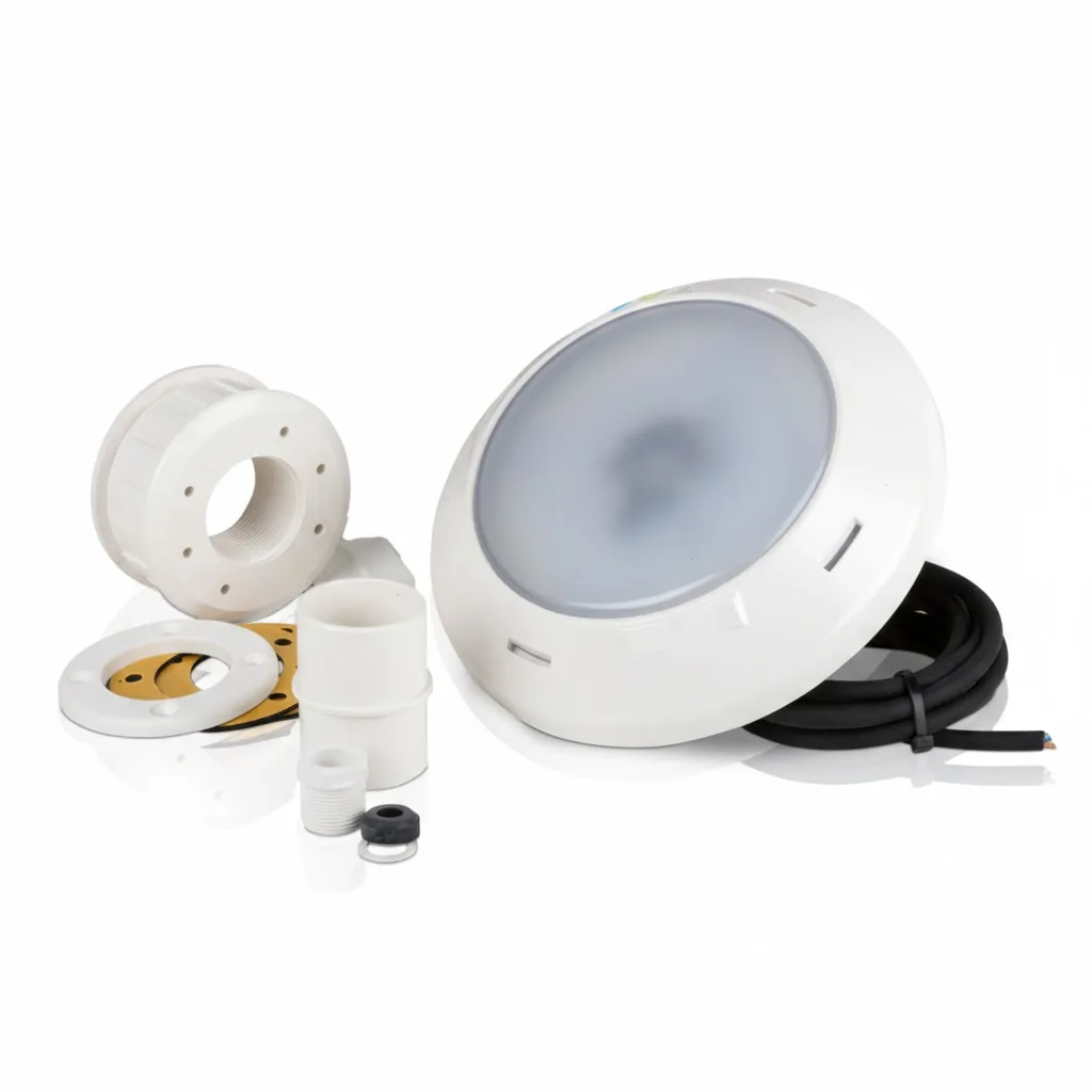 LED reflektor za montažne bazene GRE, dizajniran da obezbedi ravnomerno i energetski efikasno osvetljenje vode. PLREB model je idealno rešenje za privatne i sezonske bazene.